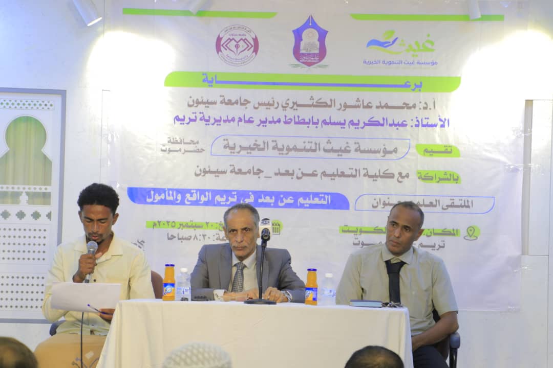 بالشراكة مع مؤسسة غيث للتنمية كلية التعليم عن بُعد تقيم الملتقى العلمي بتريم.
