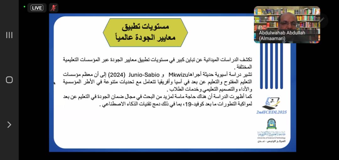 رئيس الجامعة وعميد كلية التعليم عن بُعد يحضران المرتمر الثاني للتعليم عن بُعد المقام في جامعة العلوم والتكنلوجيا.